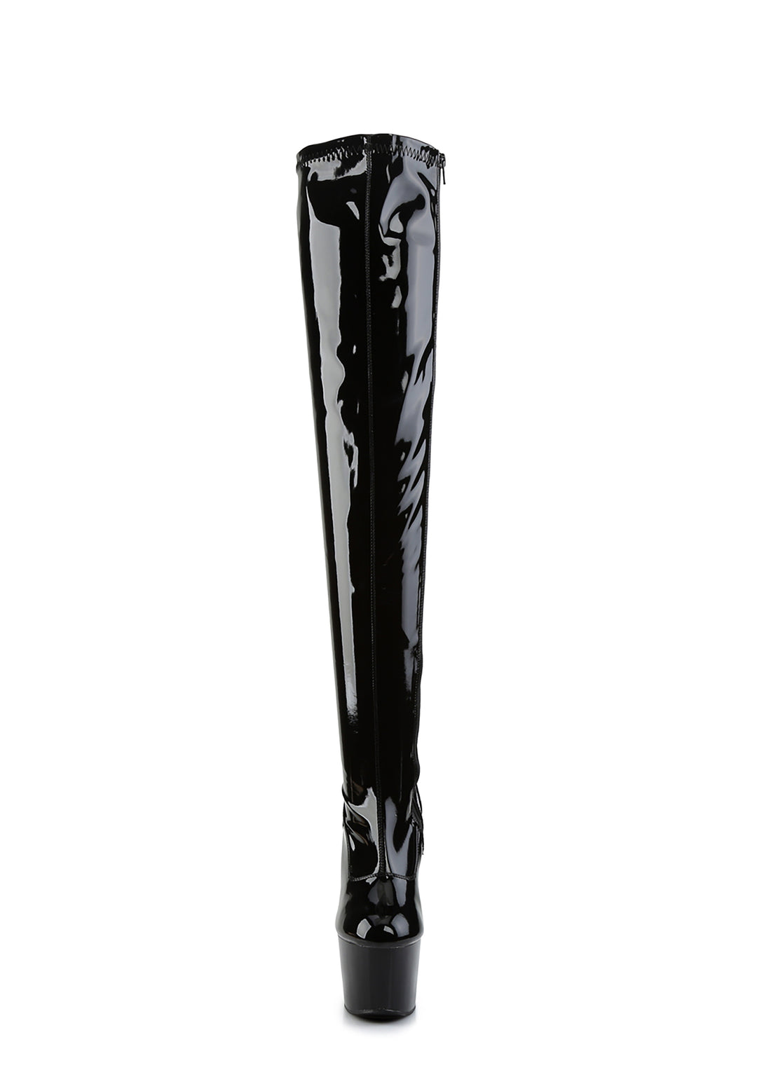 got ya walkin’ around like u own tha place! Let ’em kno ur not one to play around while wearing these thigh high platform boots with a stiletto heel and patent finish.