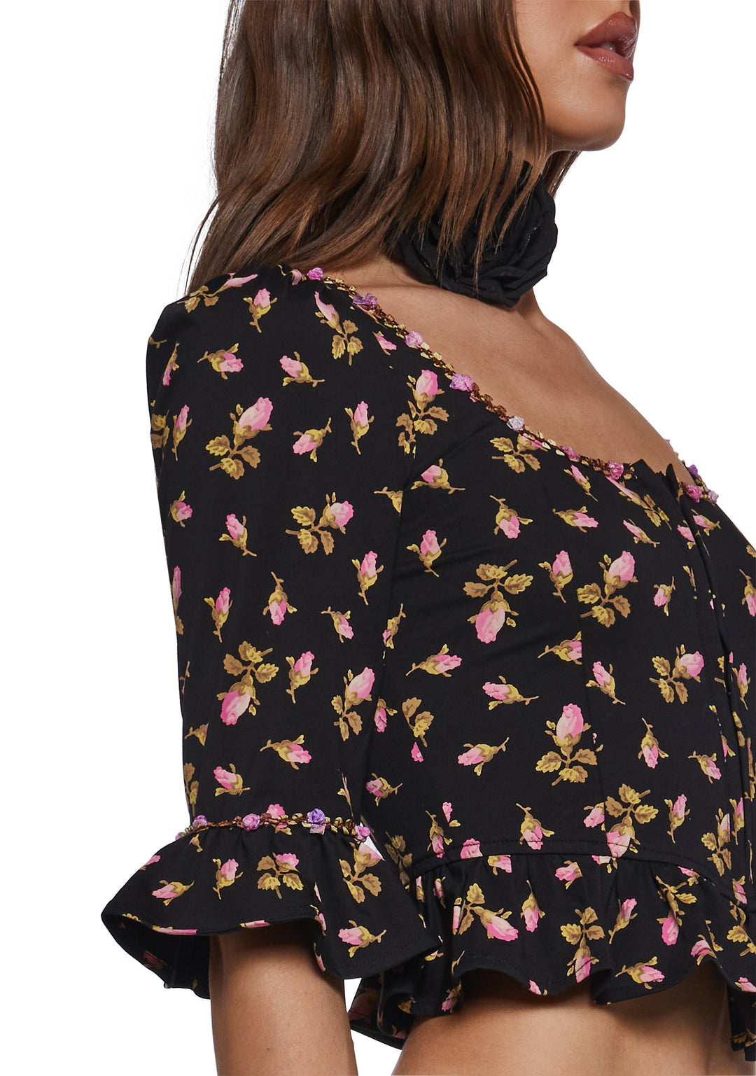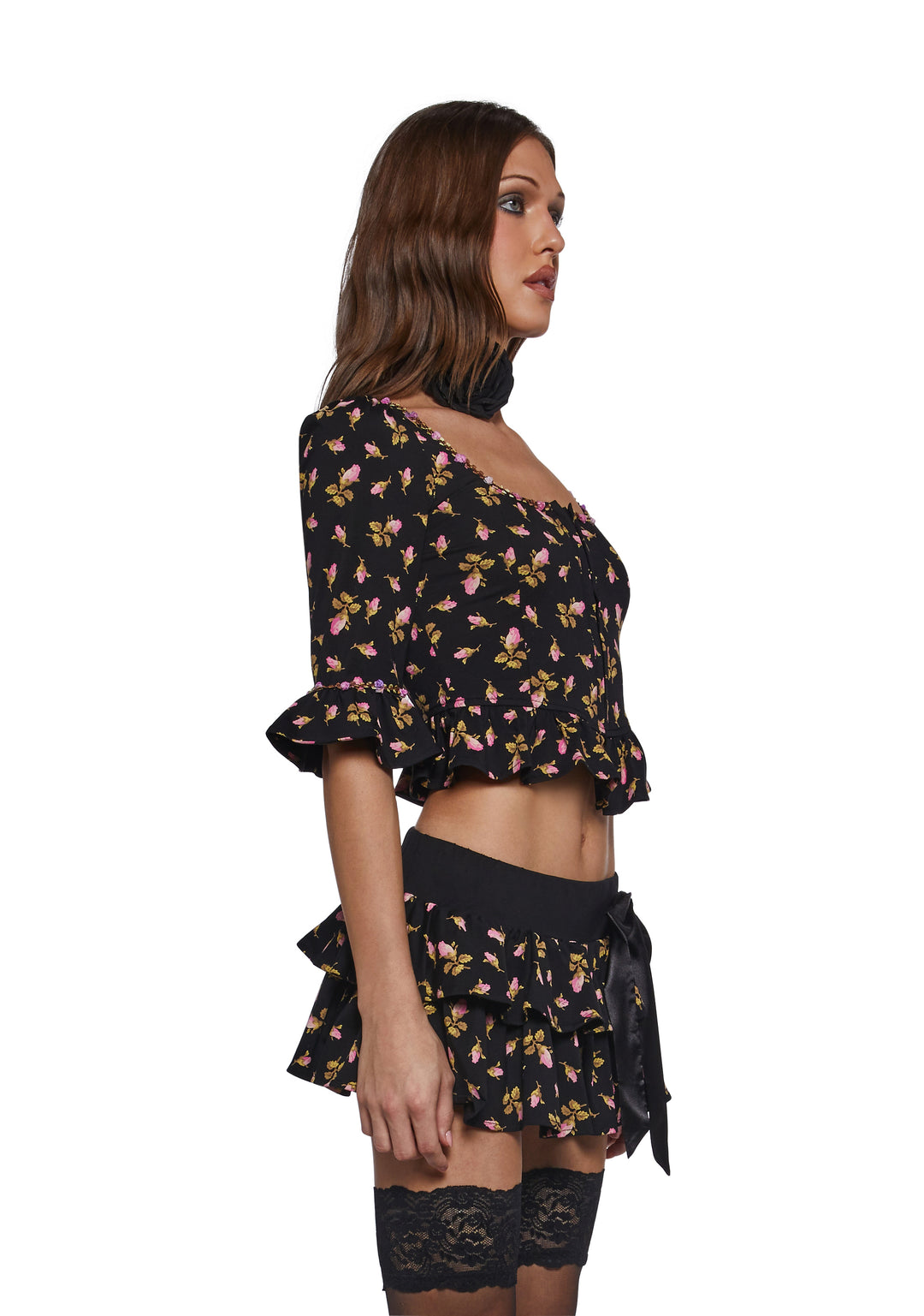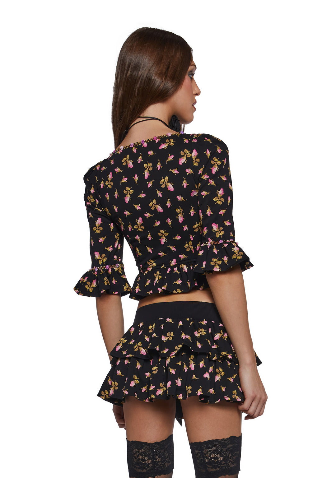 Betsey Johnson Floral Ruffled Crop Top – Multi