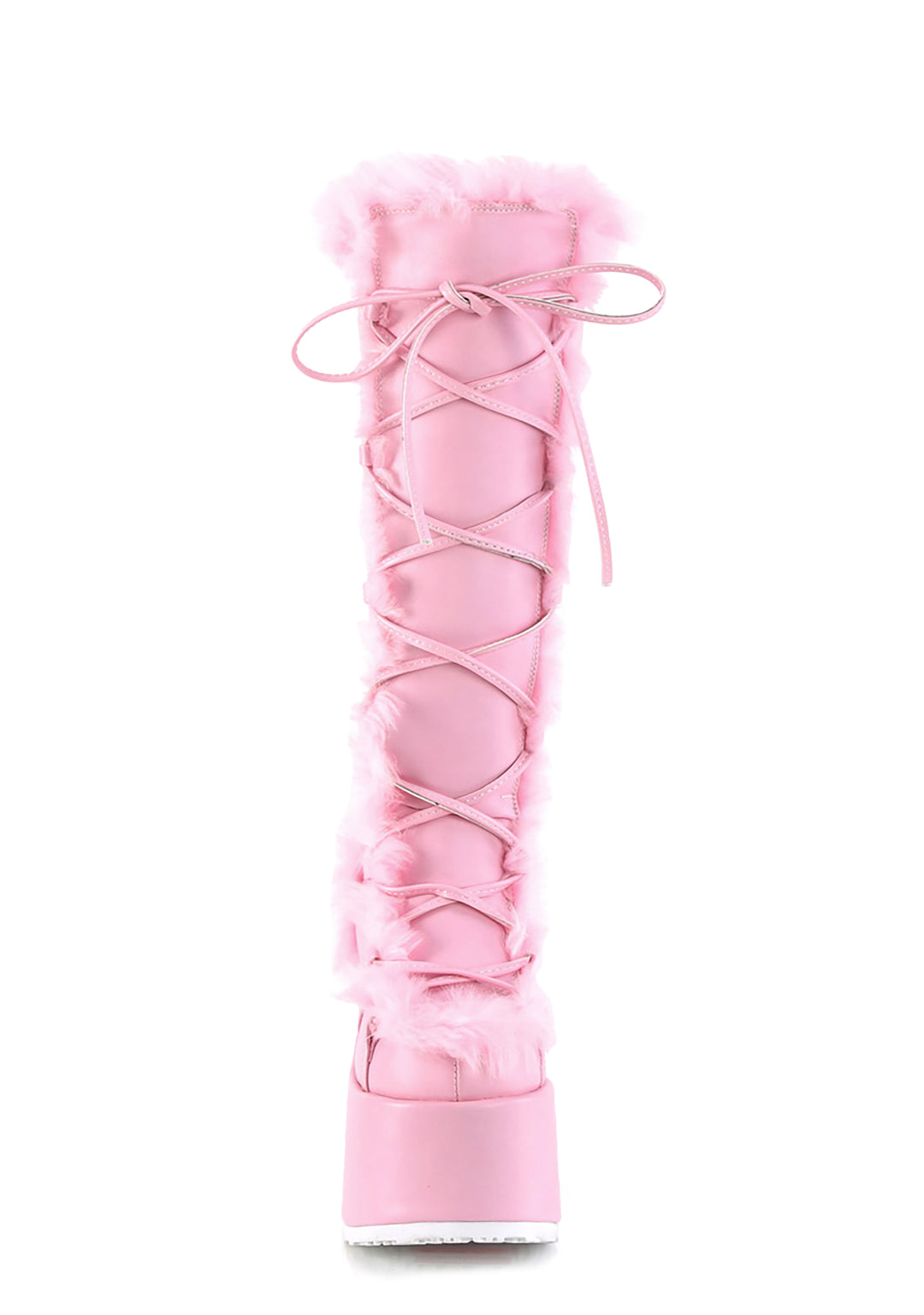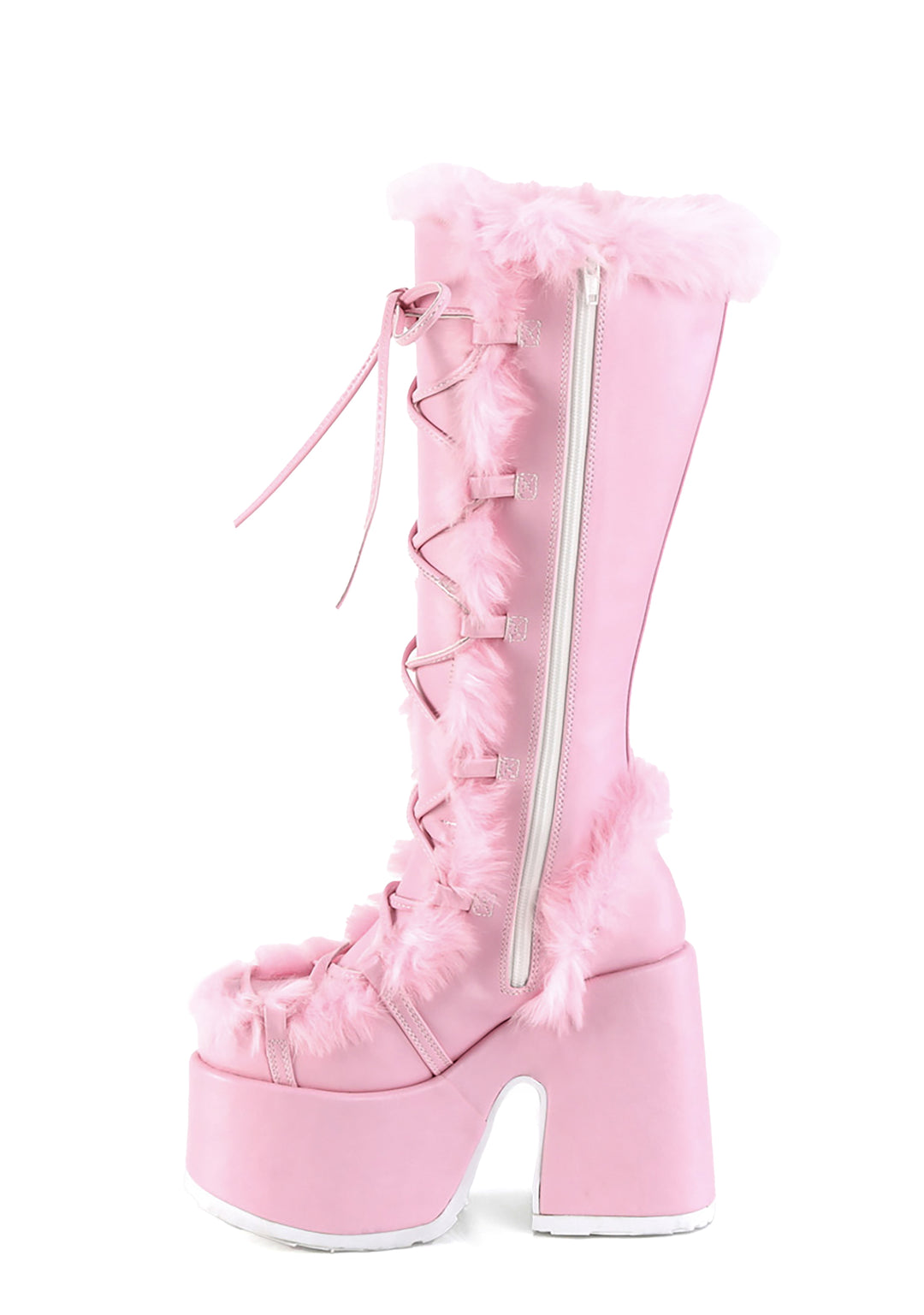 cuz you’re a vision of wonderland bb. Let ’em know the arctic goddess has arrived in these sikk heeled boots that have dreamy faux fur trim, a lace up front, side zip closure, and thicc AF platforms.