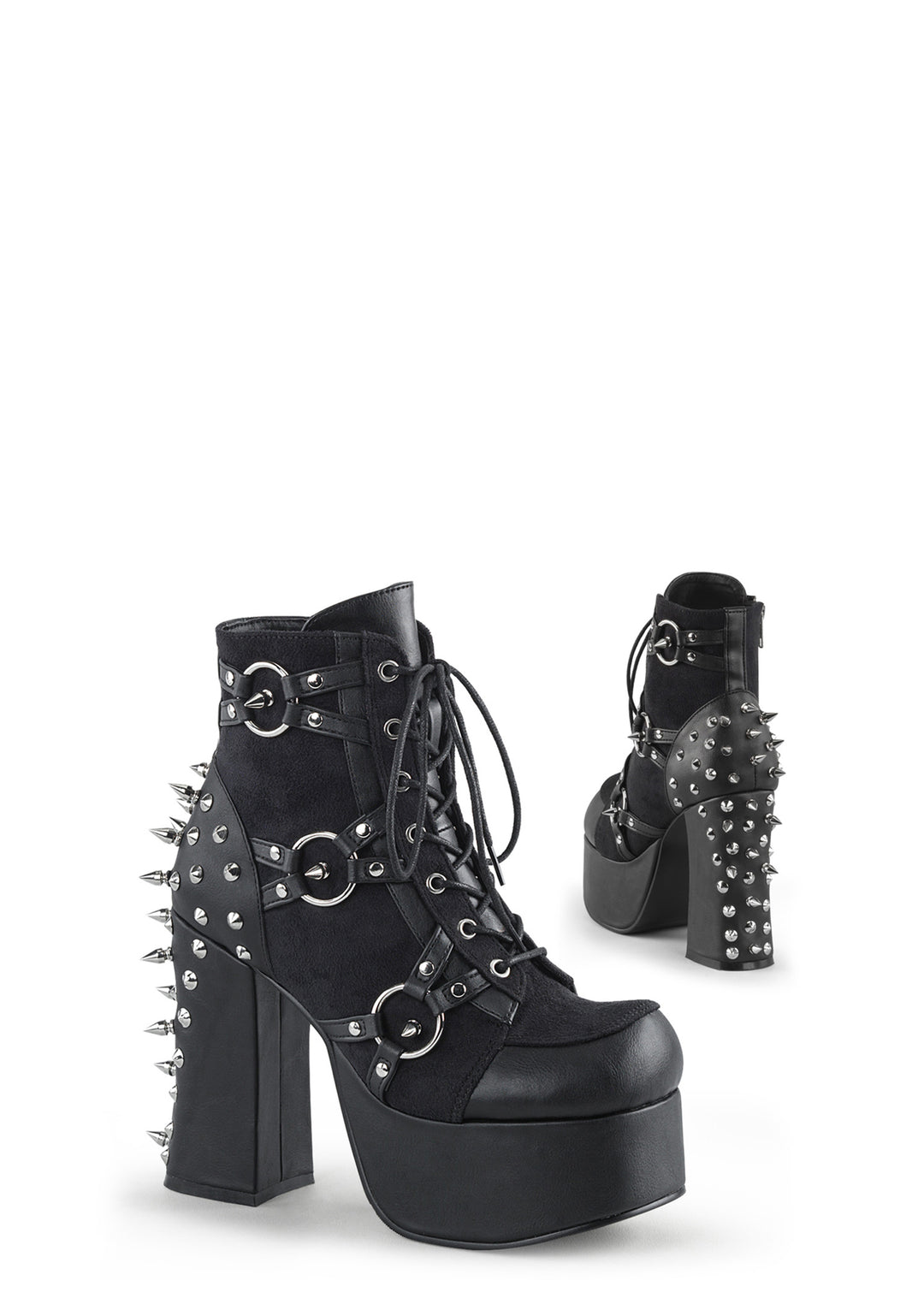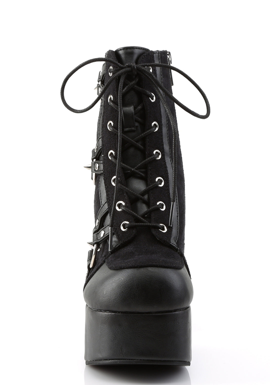 got ya throwin’ elbos in the pit babe! Get down N’ dirrrty in these dope studded platform boots that have chunky AF heels, lace-up deetz, N’ side zip closures.