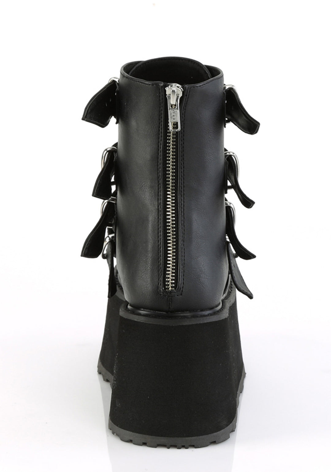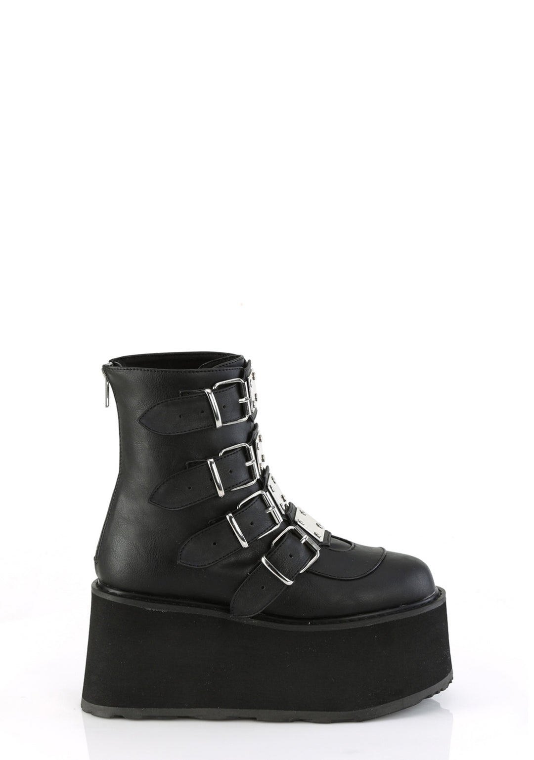 cuz you’re eternally wicked. These platform ankle boots have a vegan leather construction, tons of adjustable buckle straps, metal plate hardware on the front, and back zip closures.