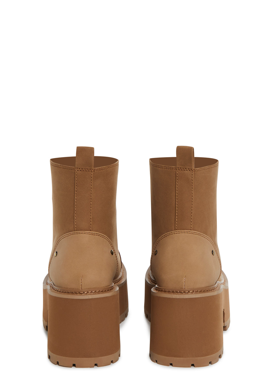Darker Wavs Faux Suede Lace Up Treaded Platform Work Boots – Brown