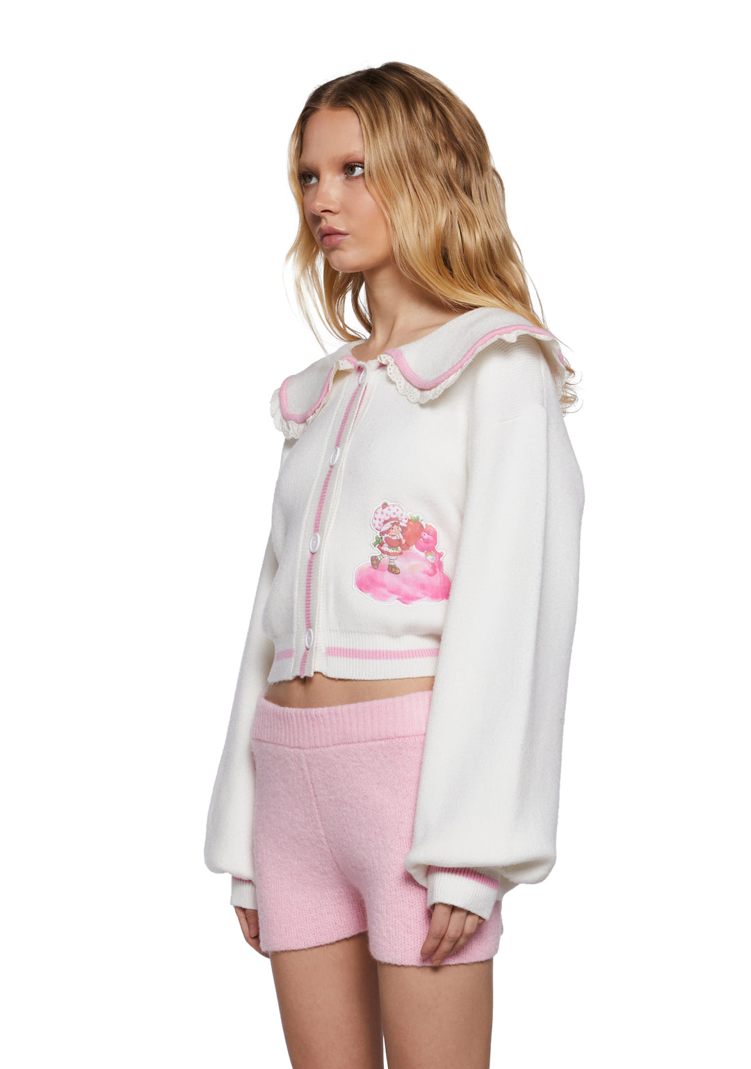 Dolls Kill | Care Bears x Strawberry Shortcake Collared Intarsia Cardigan – Off White
