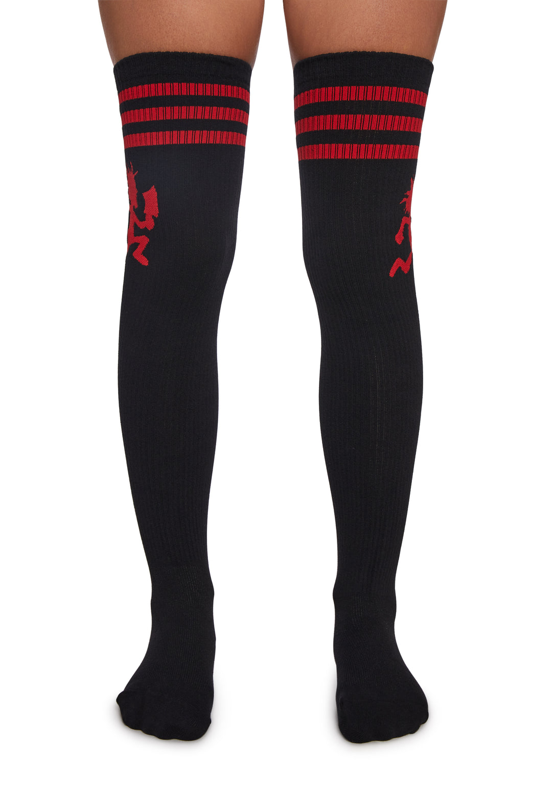 These socks have a stretchy knit construction, contrast colored stripes, and ICP logo on the sides.