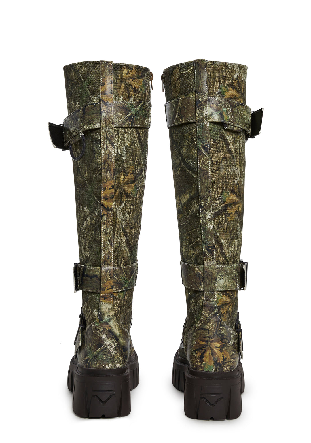 Dolls Kill x Real Tree Camo Knee High Boots – Green