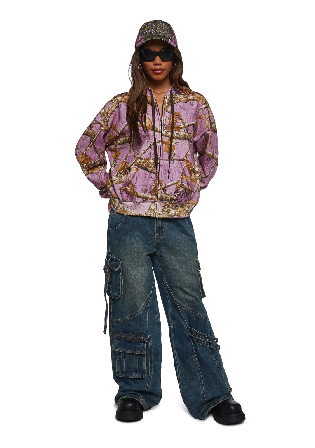 This hoodie has the signature realistic all over camo pattern against a pink background, kangaroo pockets, RealTree embroidered logo on the front, and attached hoodie with adjustable drawstrings.