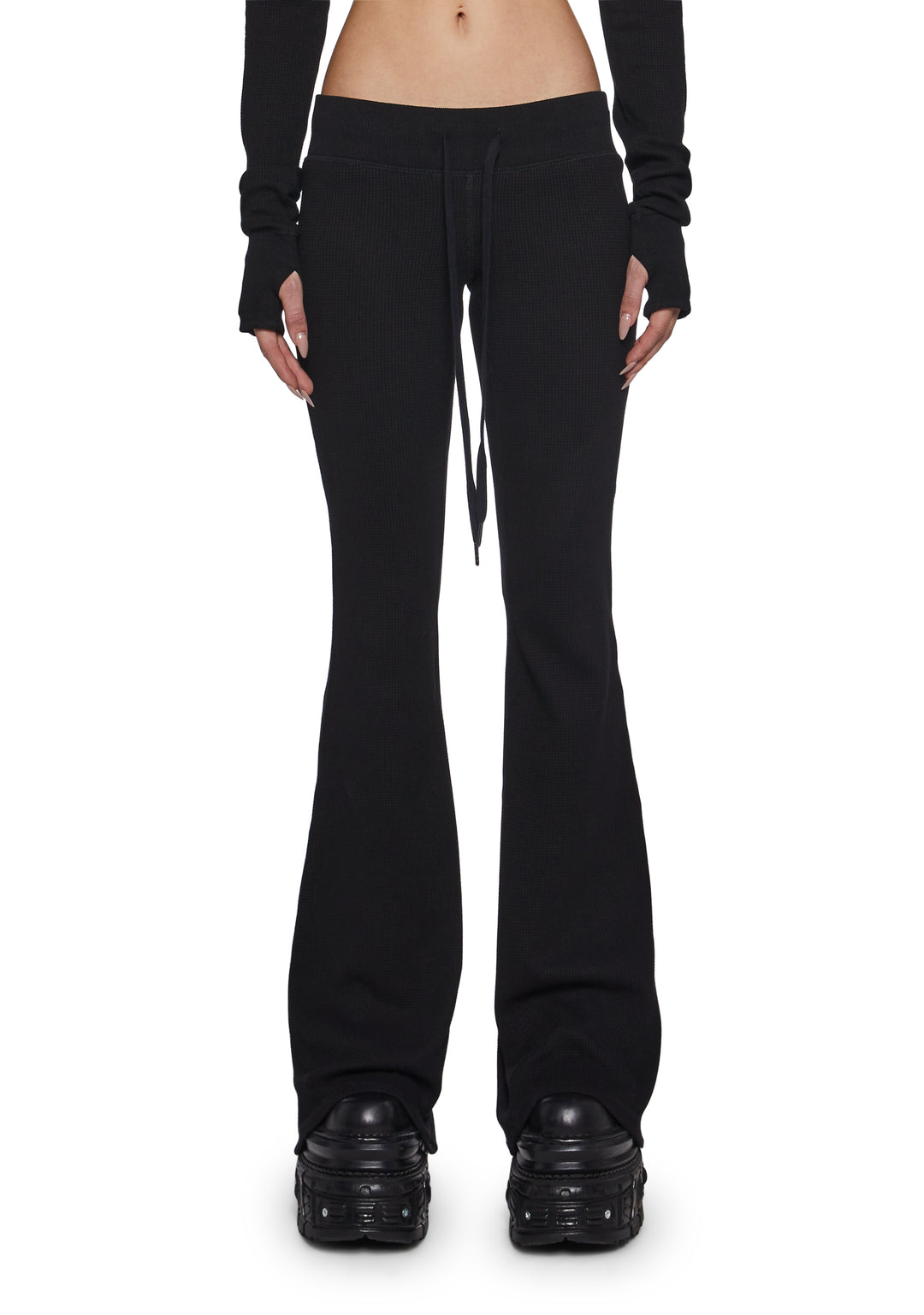 Stay cozy while serving effortless style with the Thermal Flared Pants. Made from soft, stretchy thermal fabric, these bottoms hug your curves through the hips and flare out for a sleek, elongated silhouette. Perfect for lounging, layering, or leveling up your everyday streetwear.