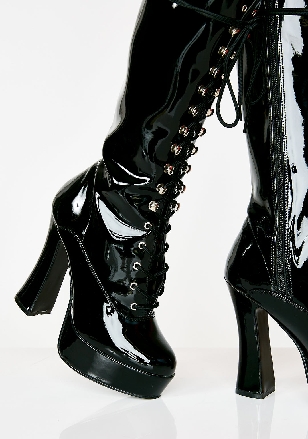 cuz ya don??t take anything less bb. Look sexxxy AF in these chunky boots that have a lace-up N?? side zip closure, and a supa slick material to have ya spendin?? their dough.