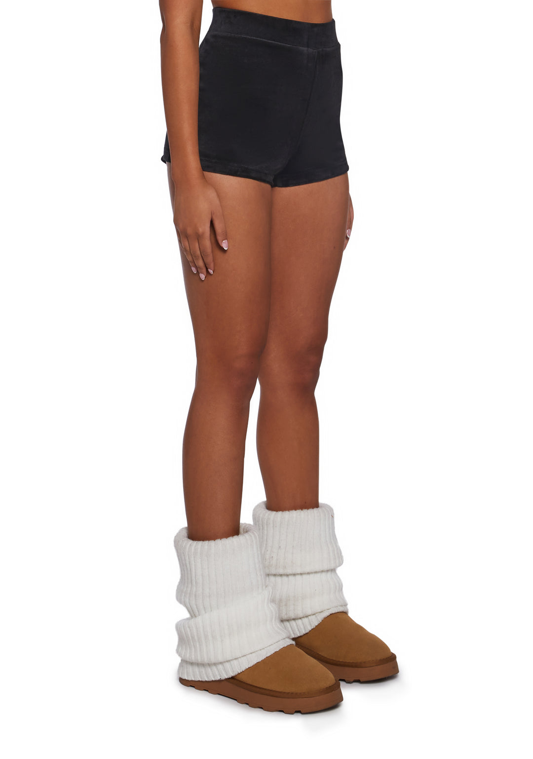 These shorts have a velour construction, “Juicy” ombre bedazzled in the back, and a high waist fit.