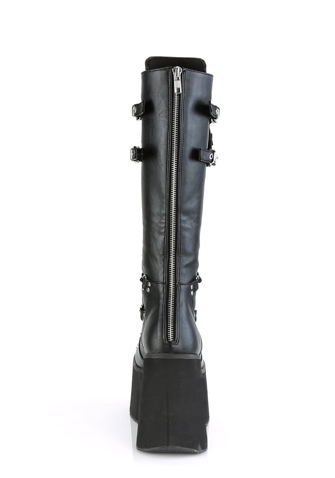 cuz ya never back down. Start a revolution in these devilish stacked moto boots that have an adjustable o-ring patch on the front, lace up N’ back zip closures.