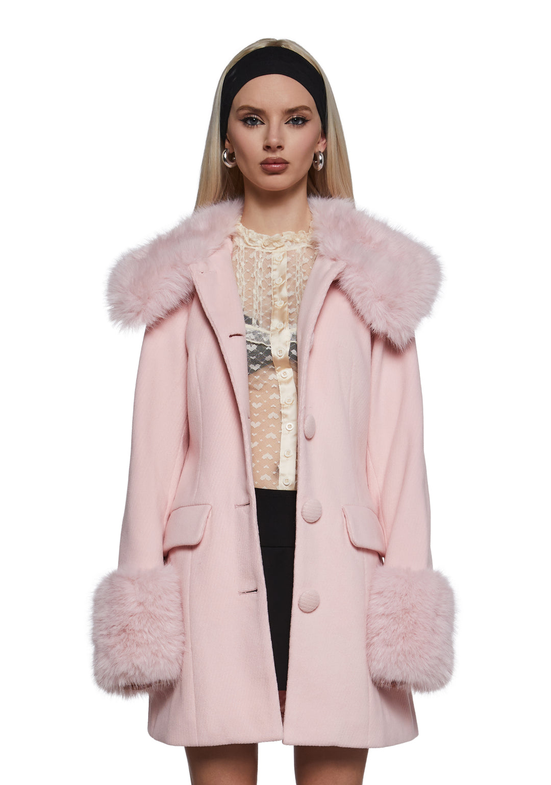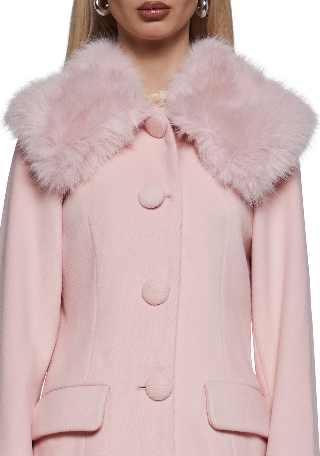 Elevate your winter wardrobe with this elegant blush pink coat, featuring plush faux fur trim for a chic and cozy finish. Designed to keep you warm in style, it??s perfect for both casual outings and dressy occasions.