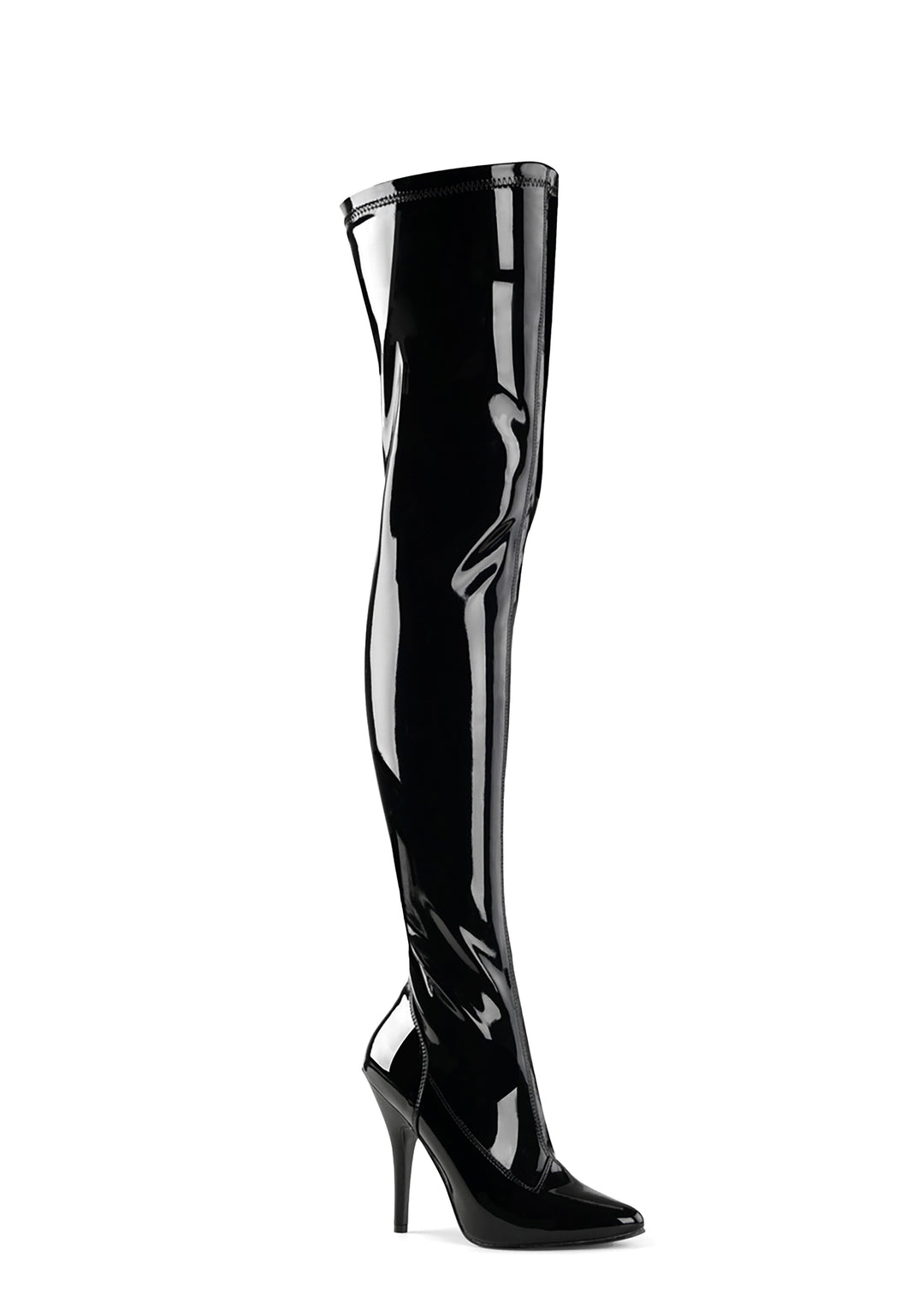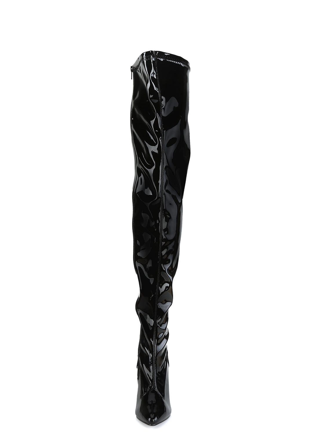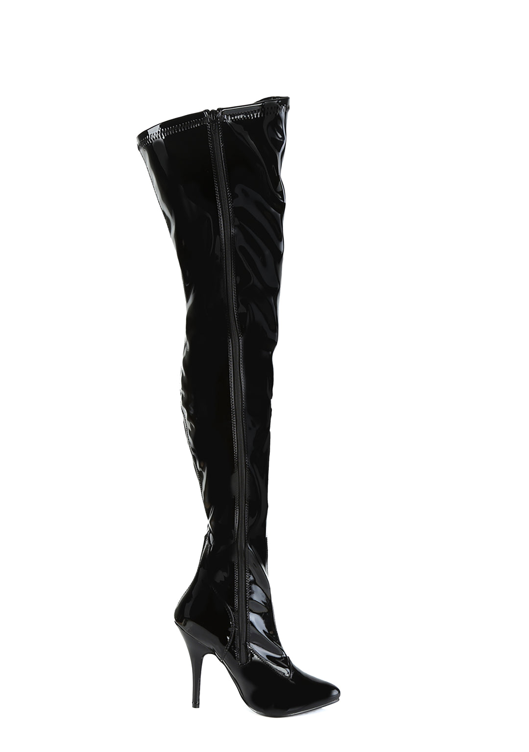 cuz if you’re not gonna treat me right, someone else will! These bad bish thigh high boots have sleek patent stretch construction, pointed toes, stiletto heels, and side zip closures.