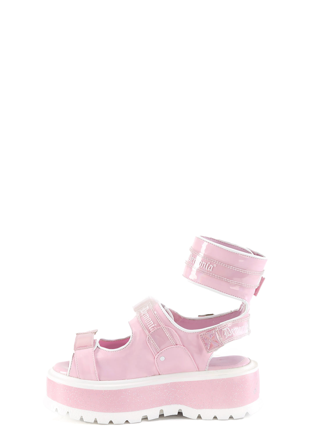 cuz you’re a cyber queen. These holographic platform sandals have an ankle strap design, buckle strap details, and adjustable velcro closures.