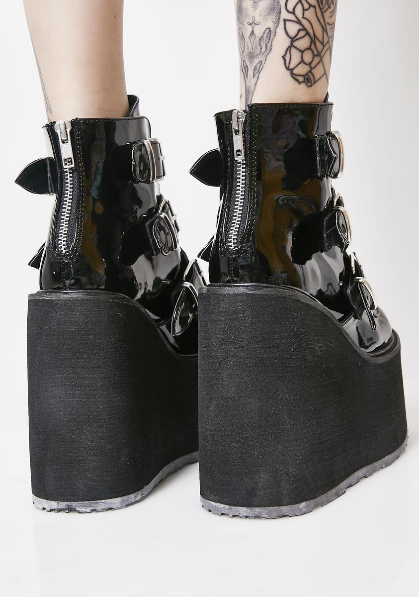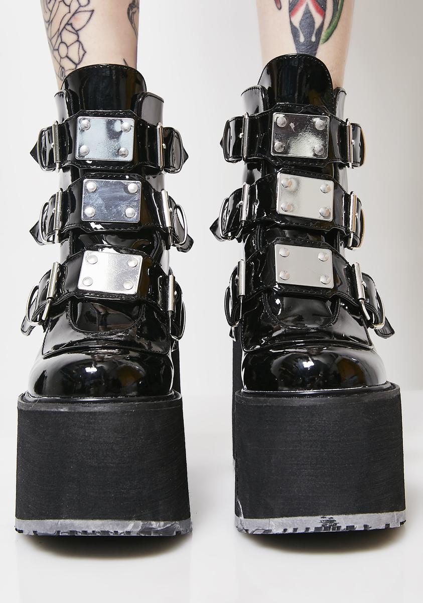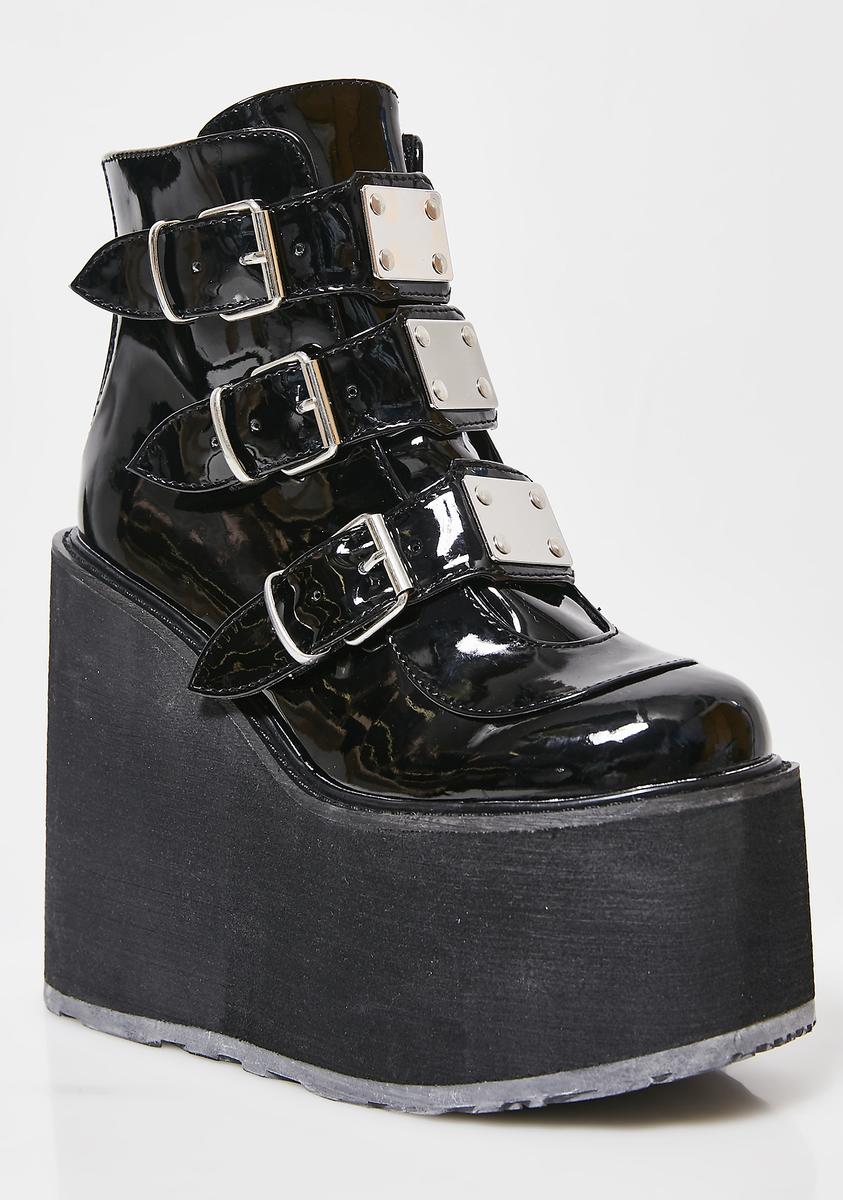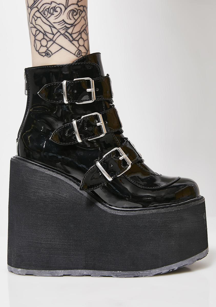 have ya entering the matrix, except yer on a whole other level. These badass boots have buckles on the sides, killer platforms and back zipper closure to keep ya futuristic.