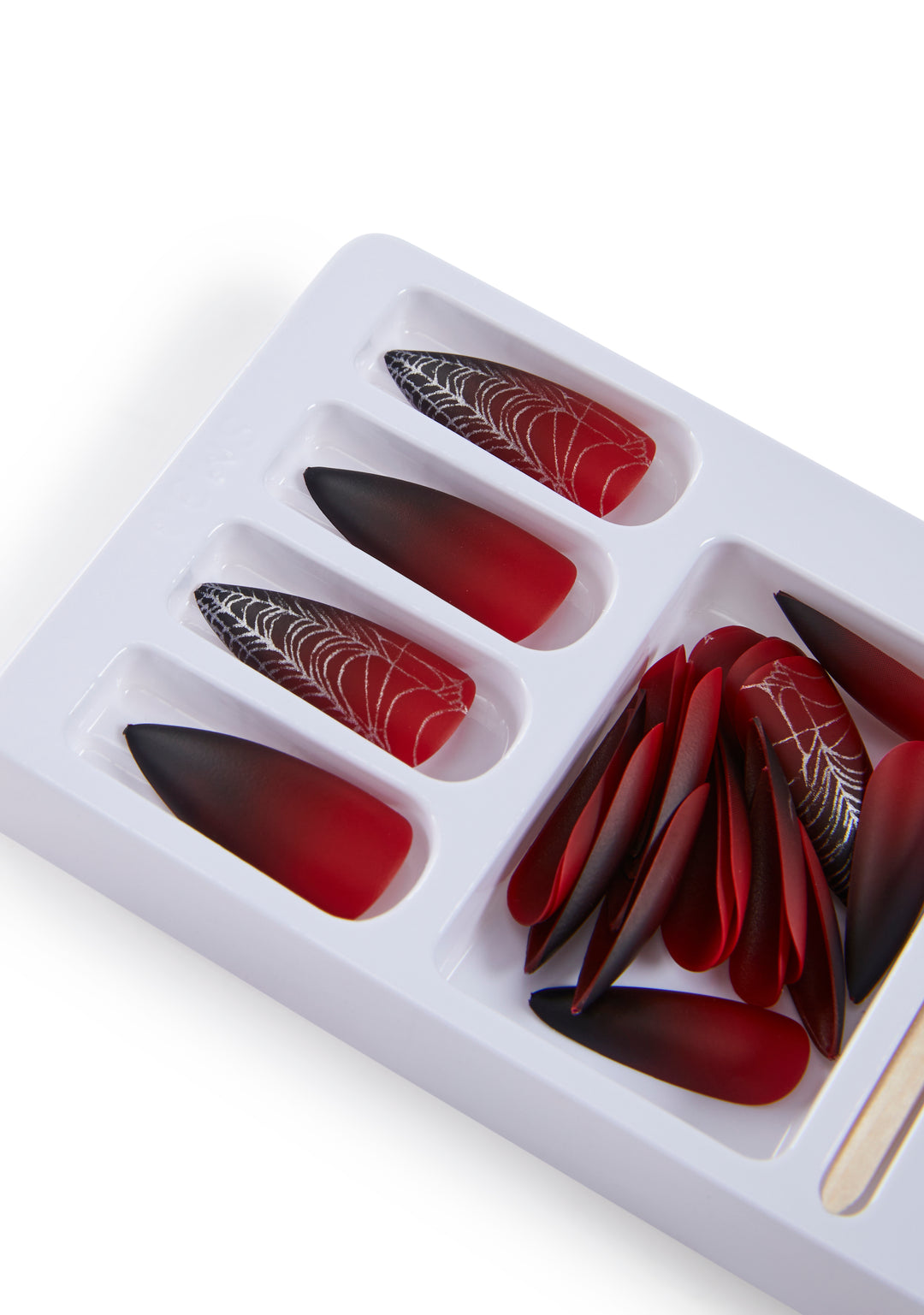 to look your best while casting spells. This press on nail set comes with a variety of nail sizes with an ombre design, a cuticle pusher, and a mini nail file.