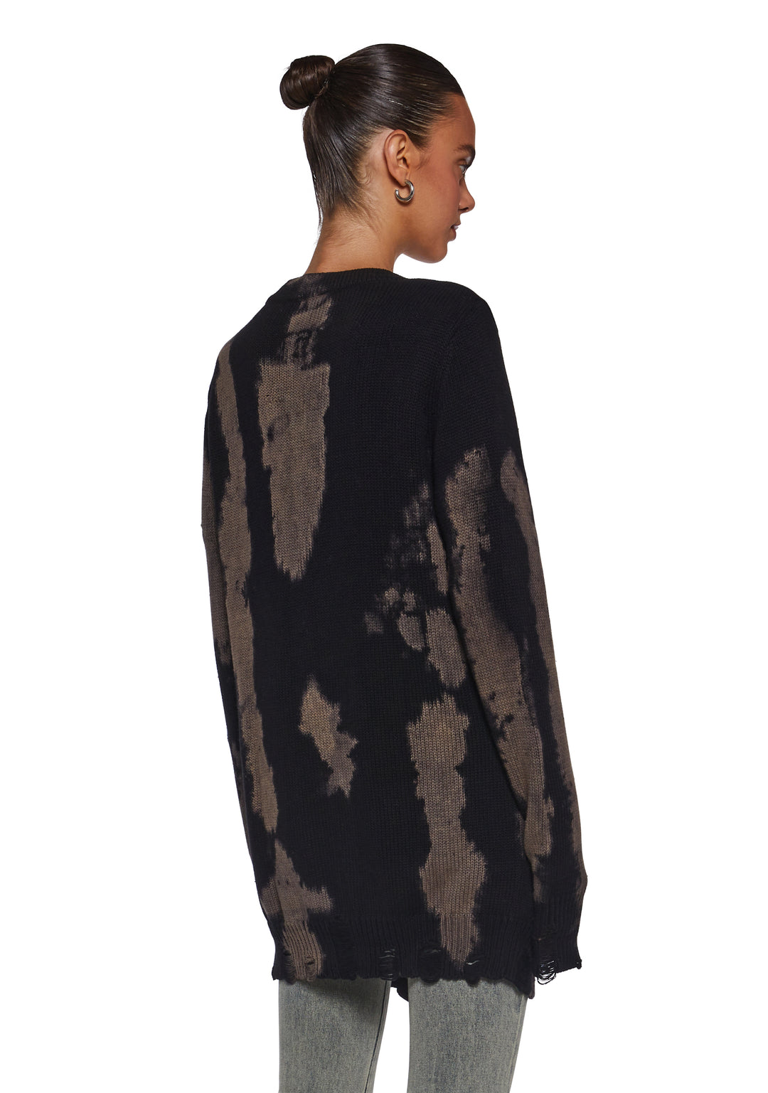 Womens Bleached Knit Oversized Cardigan Current Mood – Black