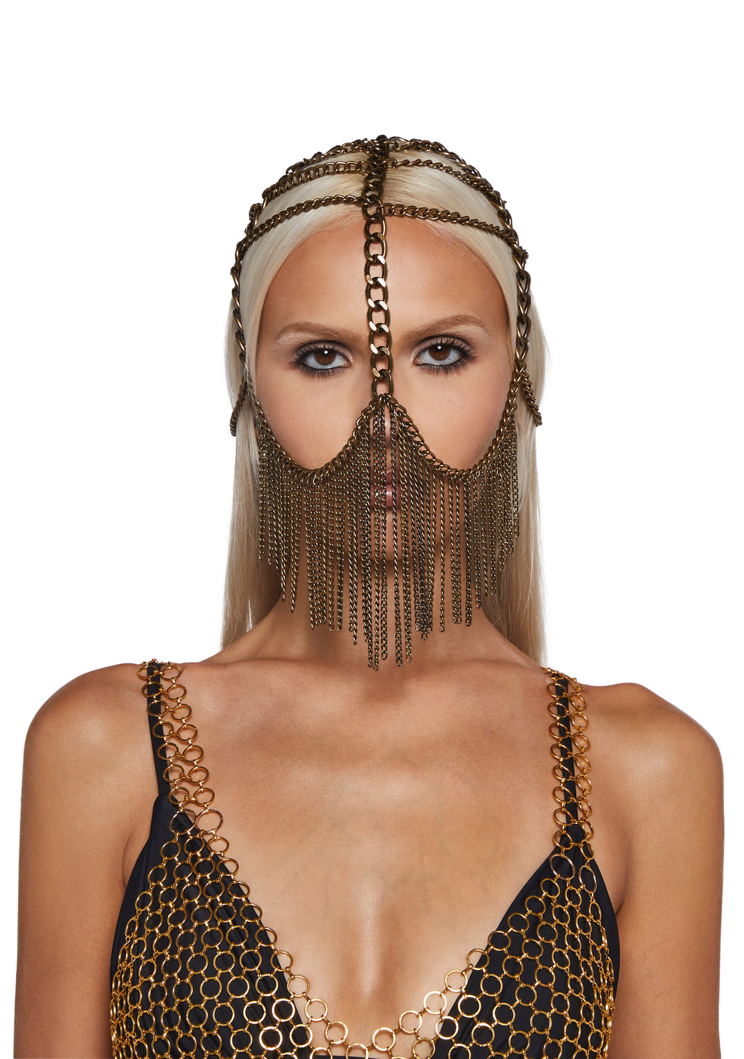 Womens Head Chainlink Fringe Jewelry Darker Wavs – Silver