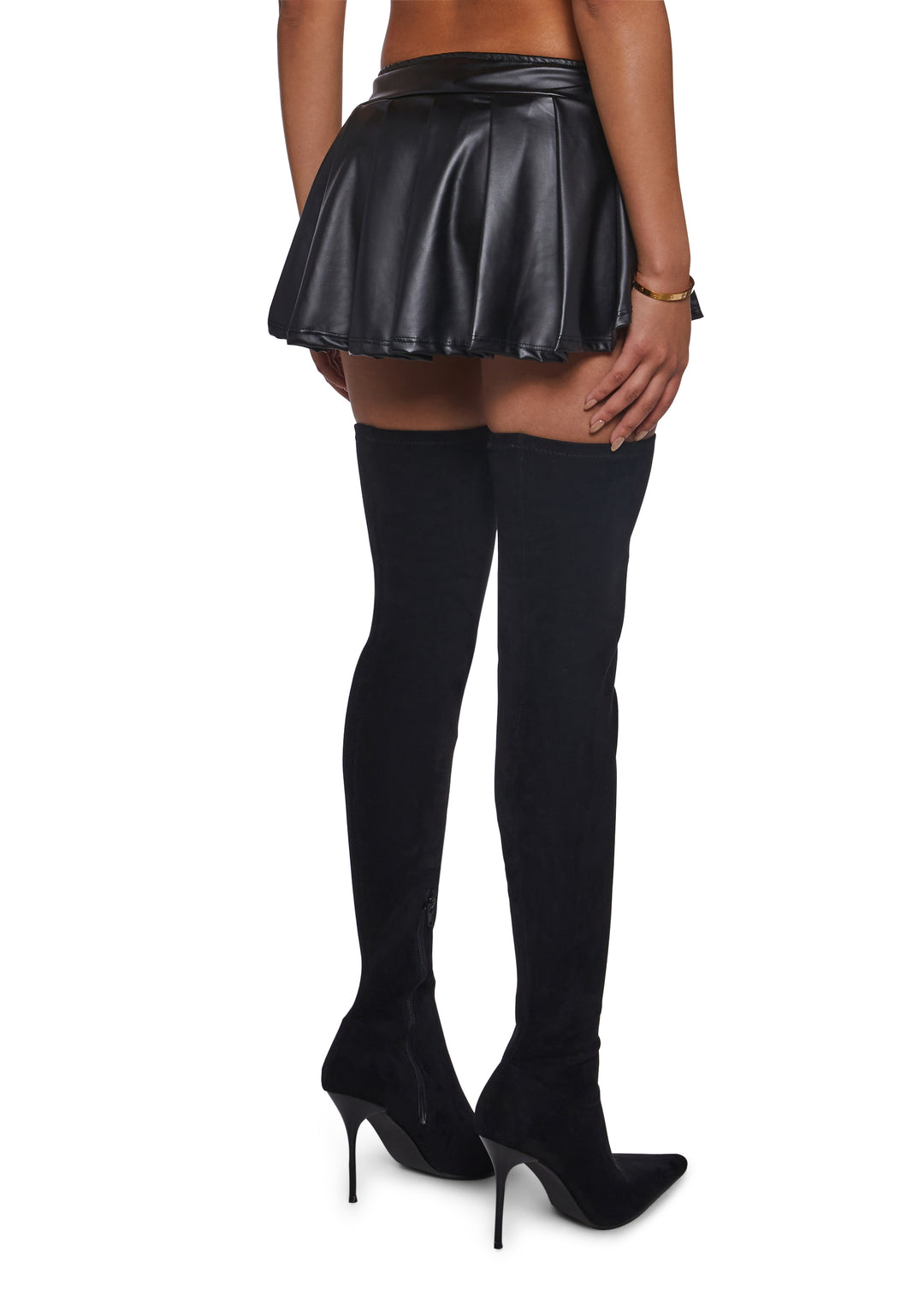 Serve a bold attitude with this leather pleated mini skirt designed to elevate any night-out look. It features a smooth leather finish, sharp pleat detailing, and a flattering low-rise fit that adds instant edge to your wardrobe.