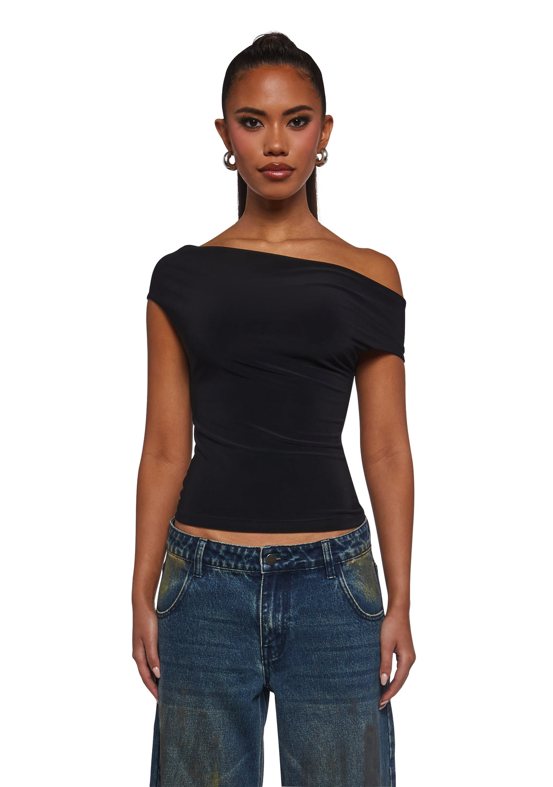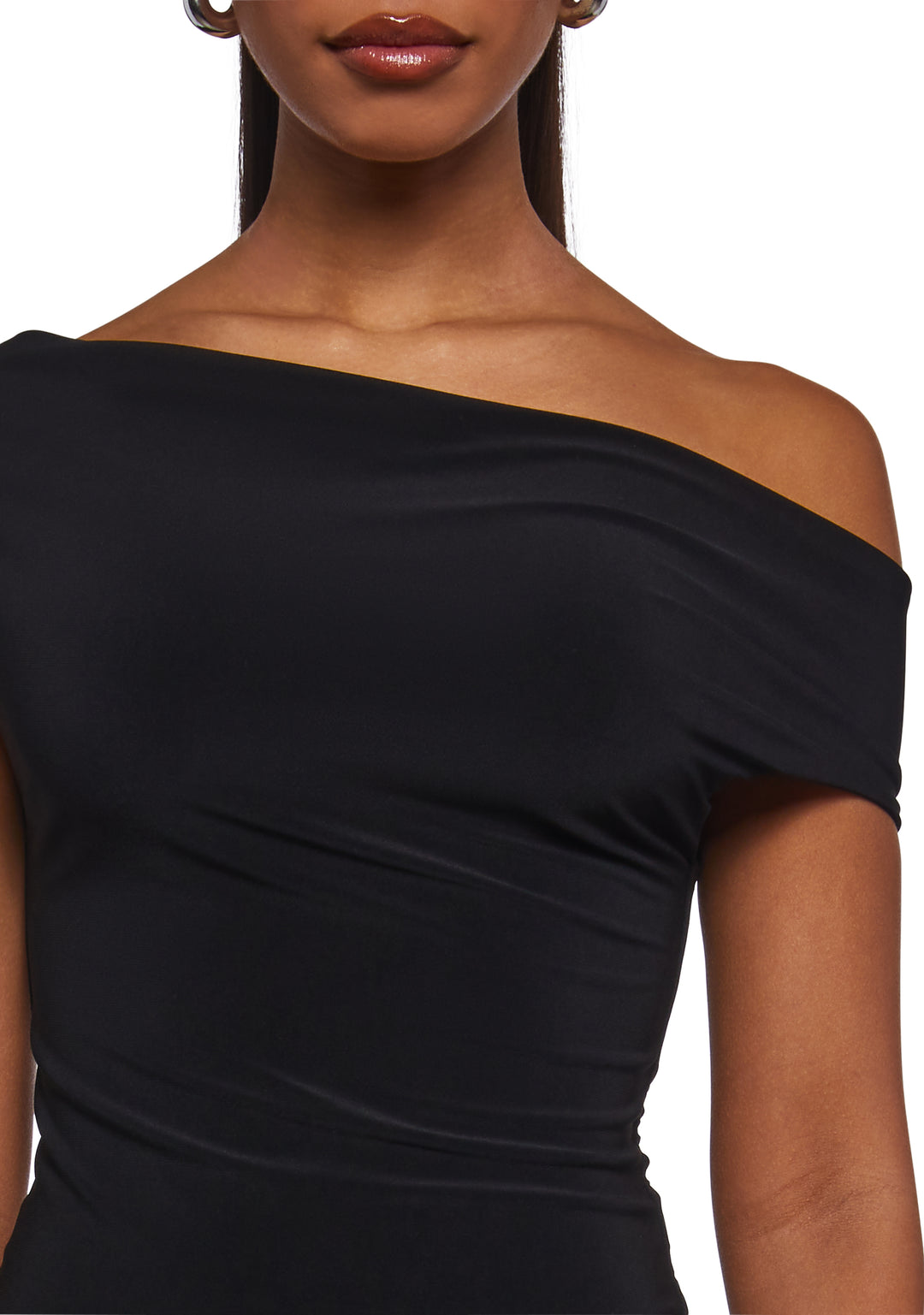 This top has a stretchy jersey knit construction, an off the shoulder design, and ruching. Perfect for dates and fun functions!