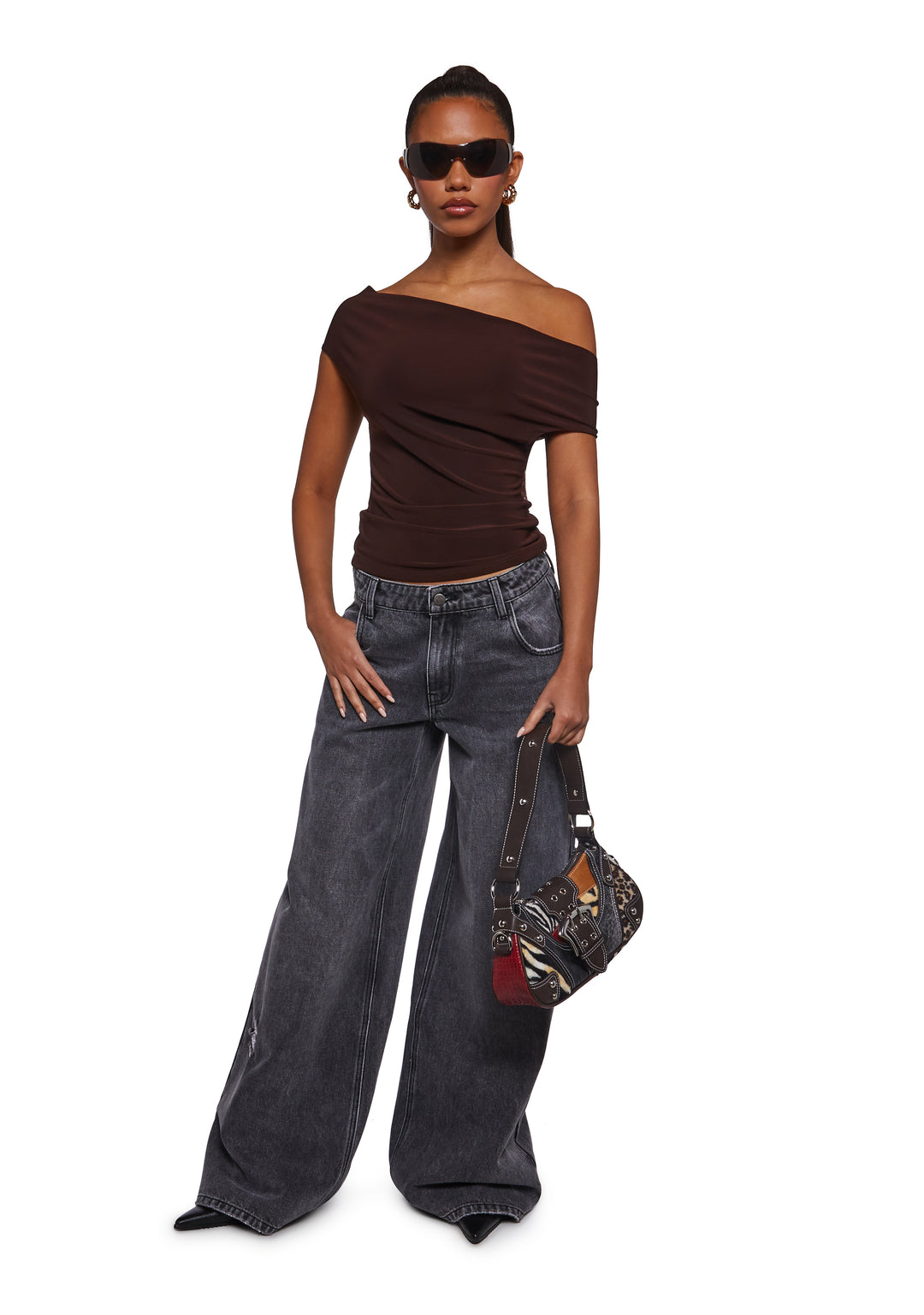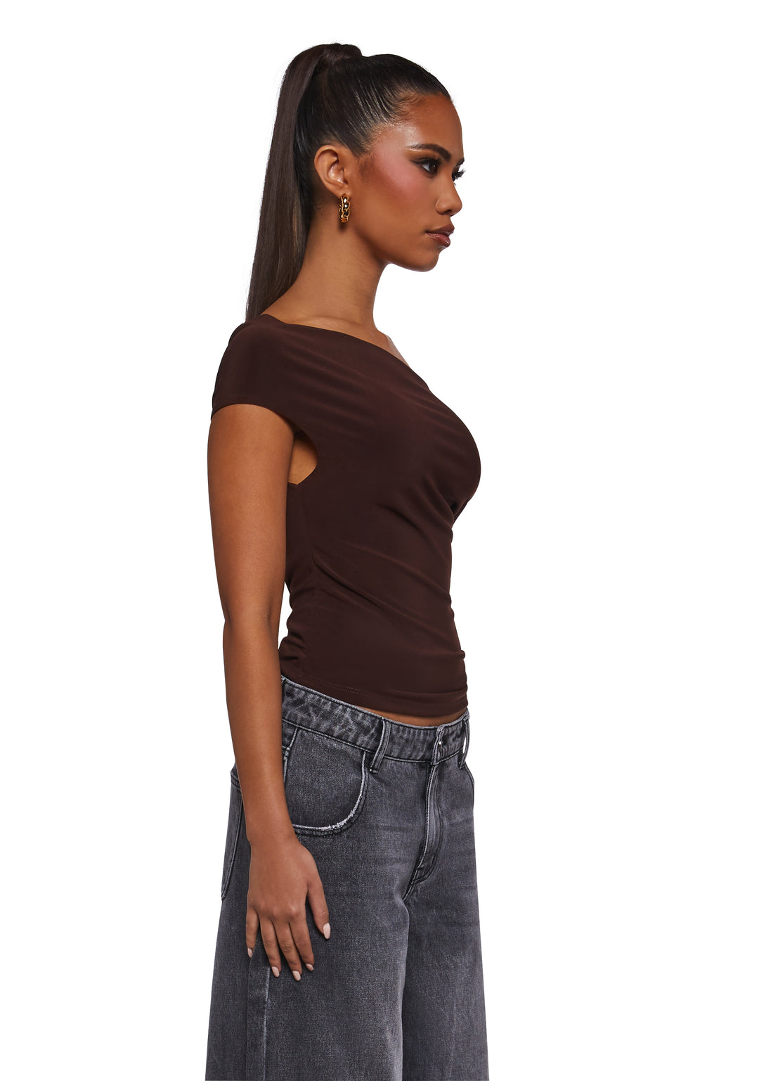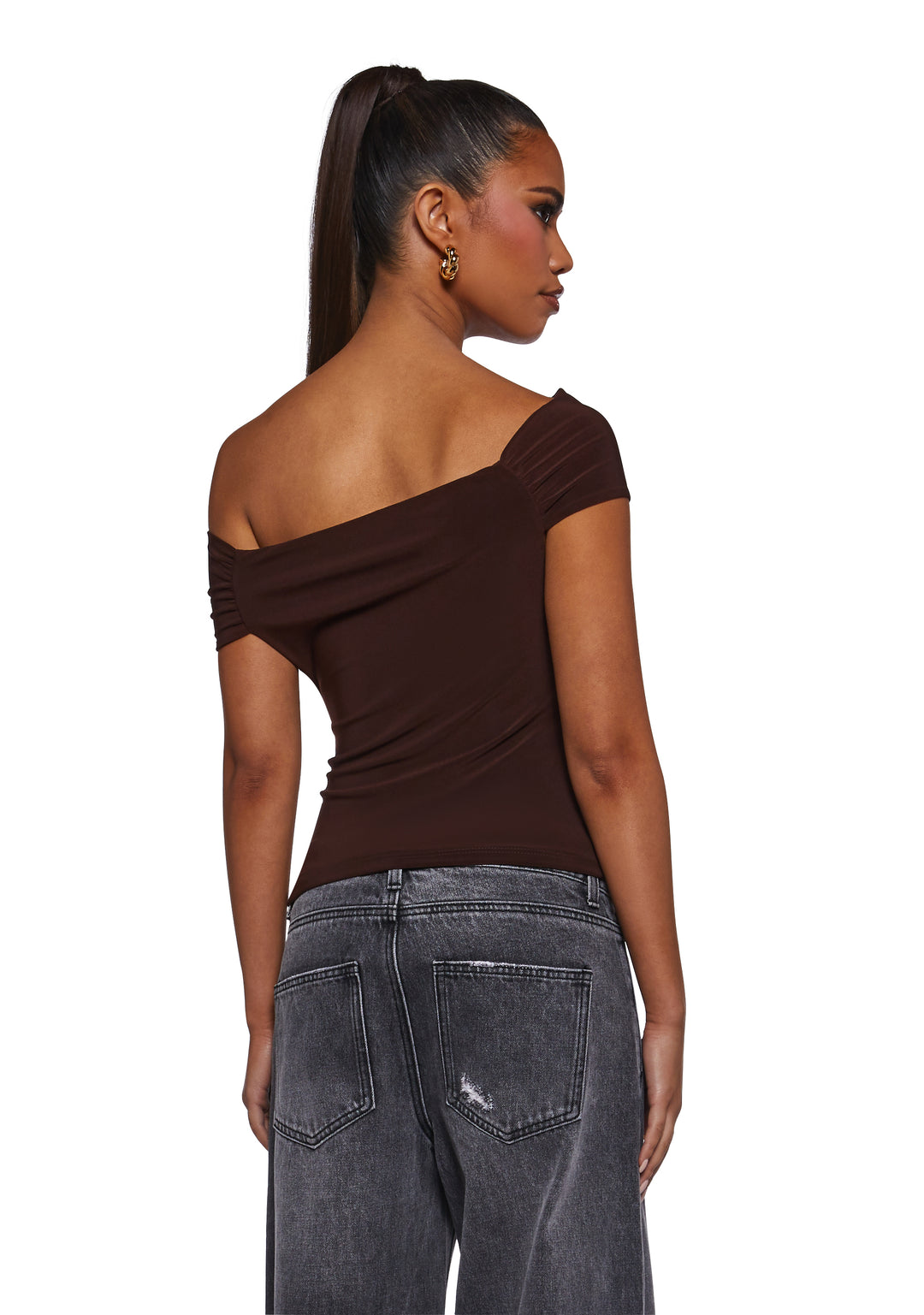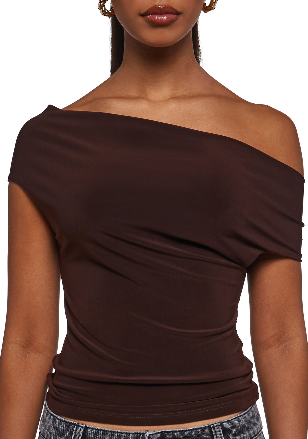 This top has a stretchy jersey knit construction, an off the shoulder design, and ruching. Perfect for dates and fun functions!
