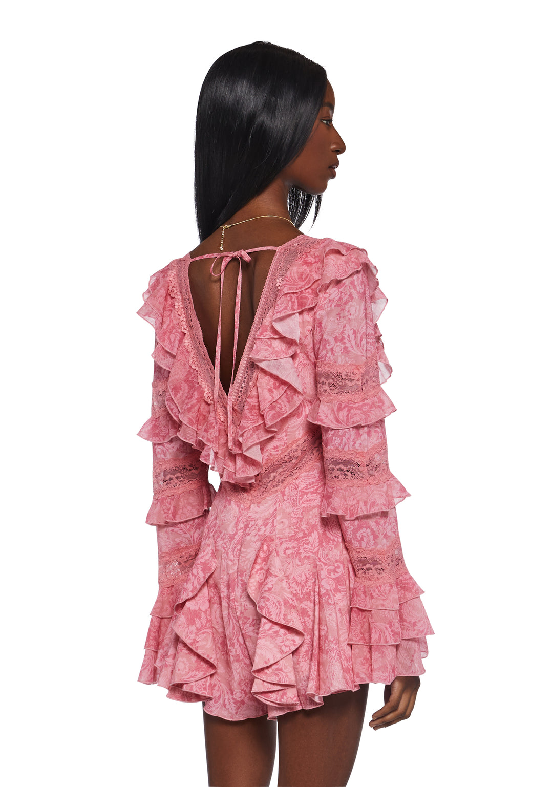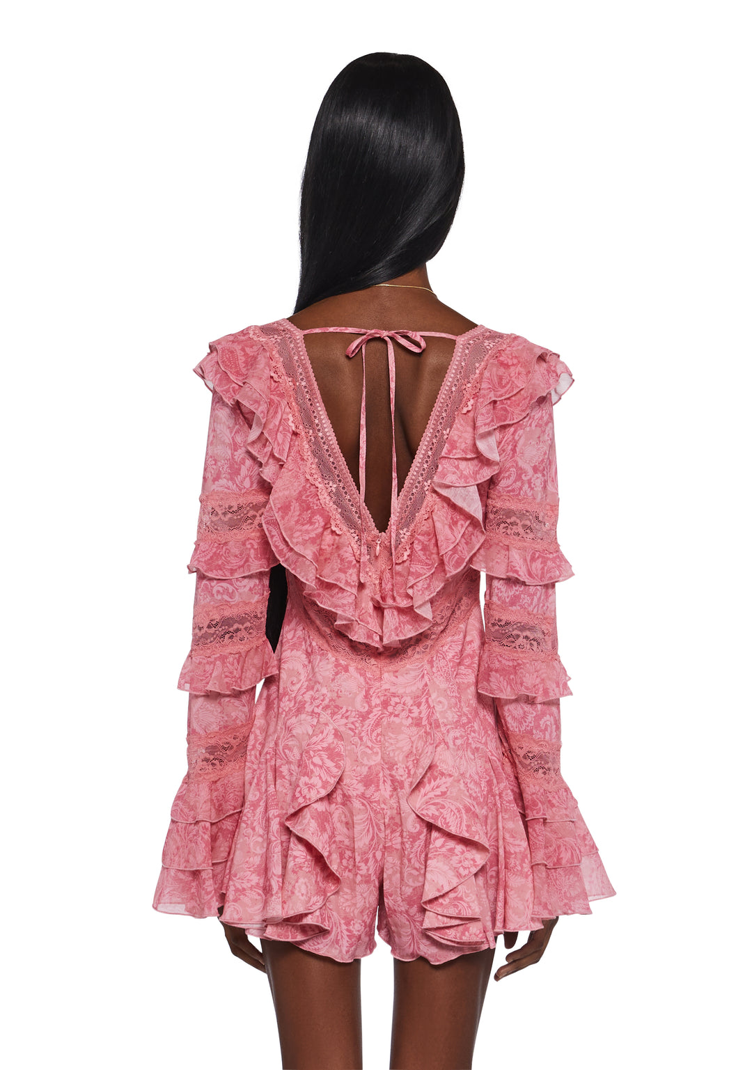 Womens Ruffled Lace Romper Sugar Thrillz – Pink