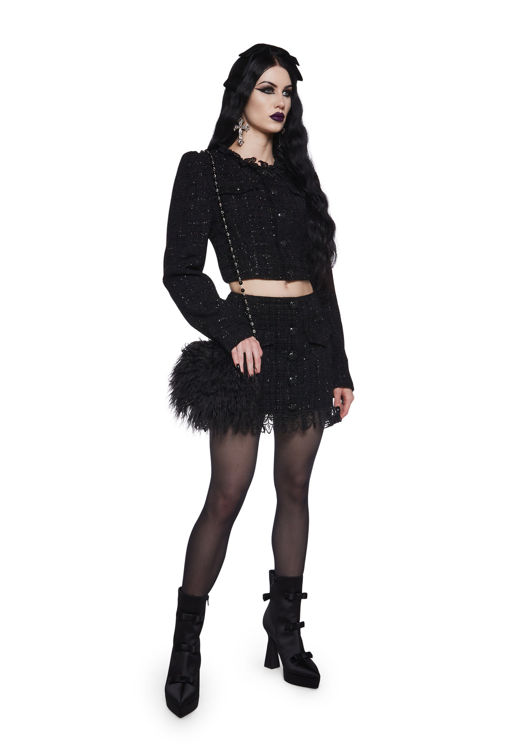 Womens Sexy Tweed Glitter Cropped Blazer Widow – Black