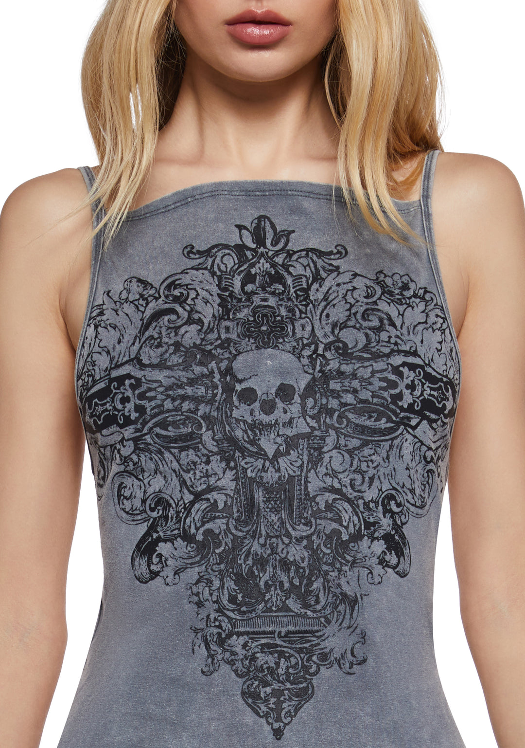 Womens Skull Cross Filigree Tank Widow – Gray