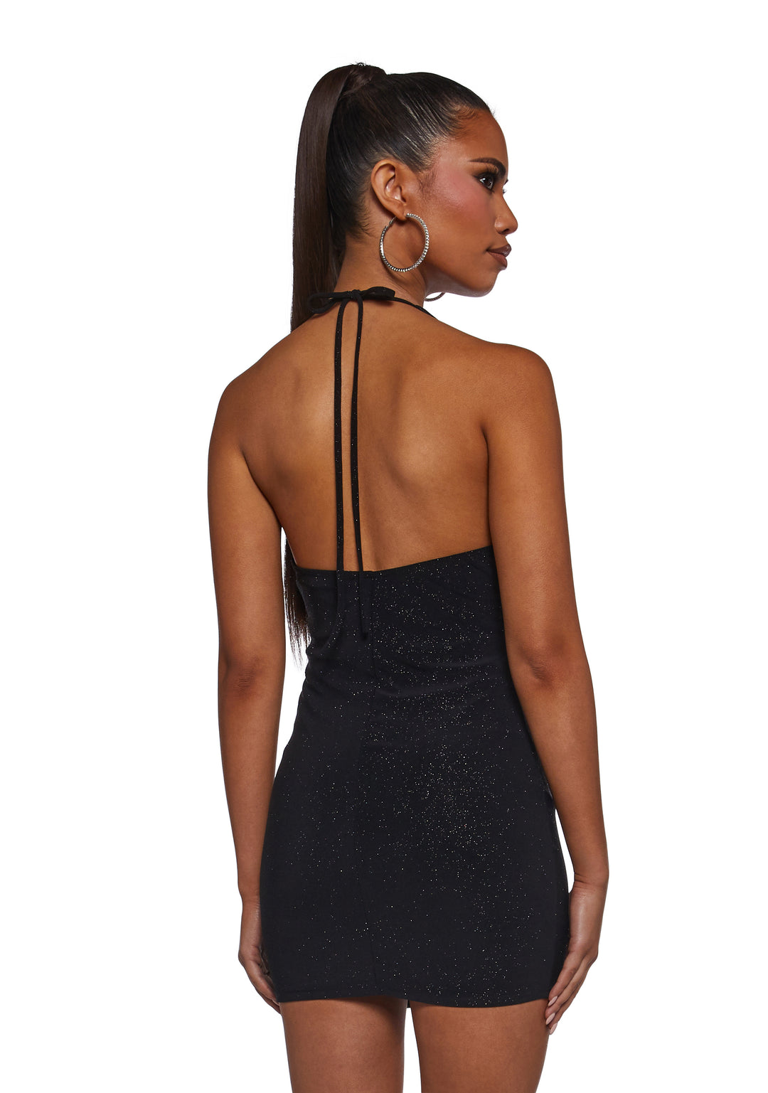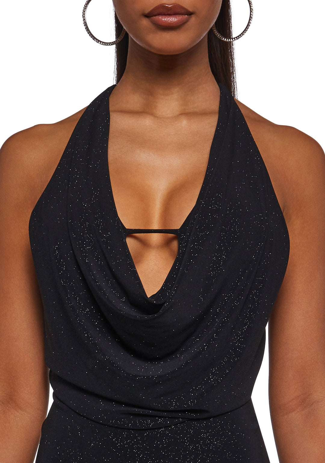 Make an unforgettable entrance in this sparkle sequin dress, designed with a deep cowl neckline, straps, and back tie closures. Add sultry elegance to its shimmering finish. Perfect for parties, nights out, and any moment you want to shine.