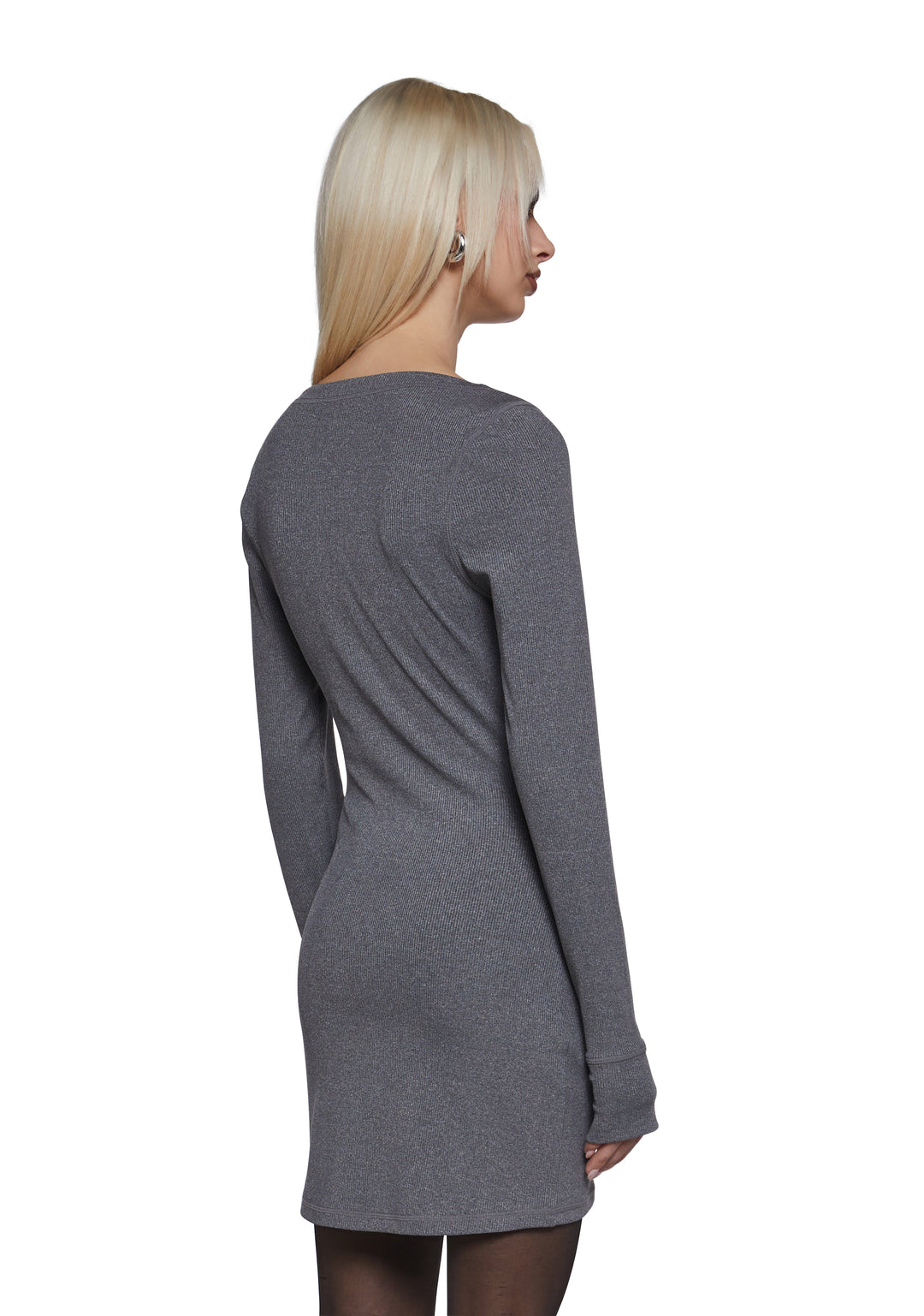 This henley dress has a ribbed construction, a v-neckline, long sleeves, contrast colored stitching, and front button closures.