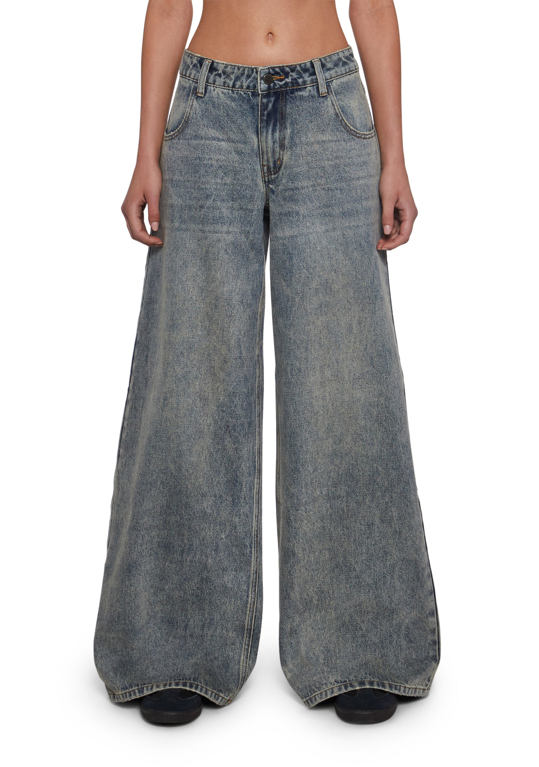 Womens Washed Denim Wide Leg Jeans Current Mood – Blue